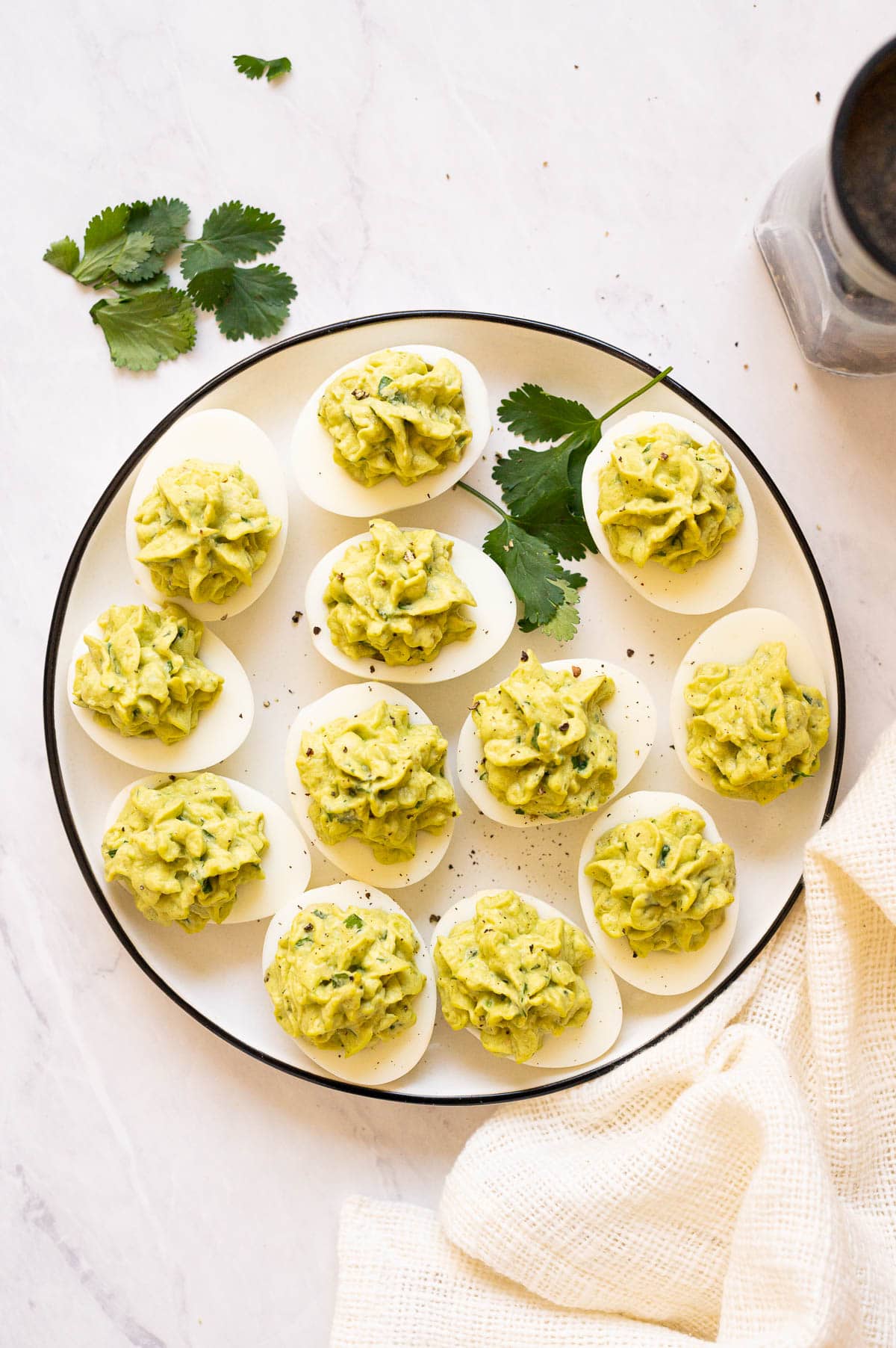 Avocado egg salad and avocado deviled eggs really grew on me. I have been making my healthy egg salad for lunches for years but I have been craving something lighter.