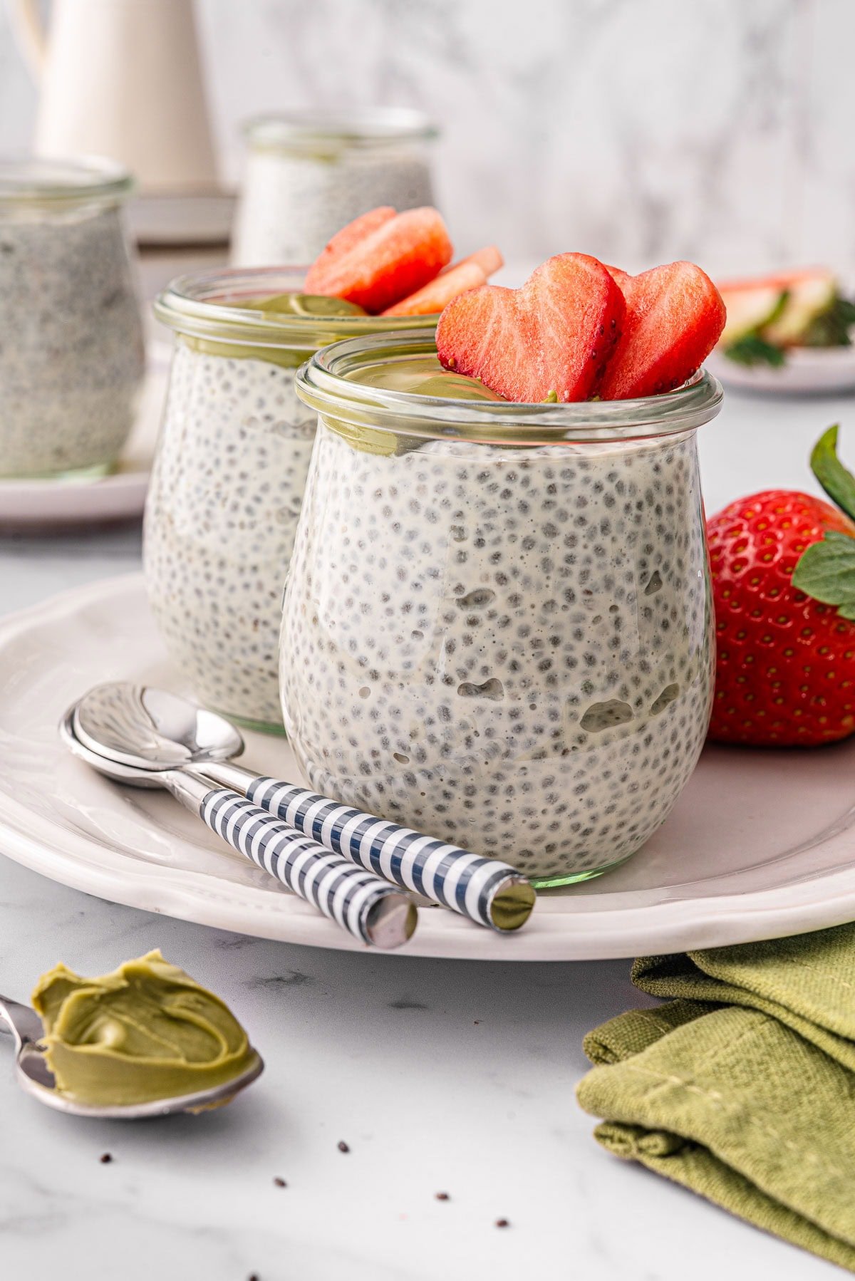 I have many chia pudding recipes on iFoodReal, but this Greek yogurt chia pudding is one of my favorites, right up there with tiramisu chia pudding, because it’s super creamy and tastes like a cheesecake!