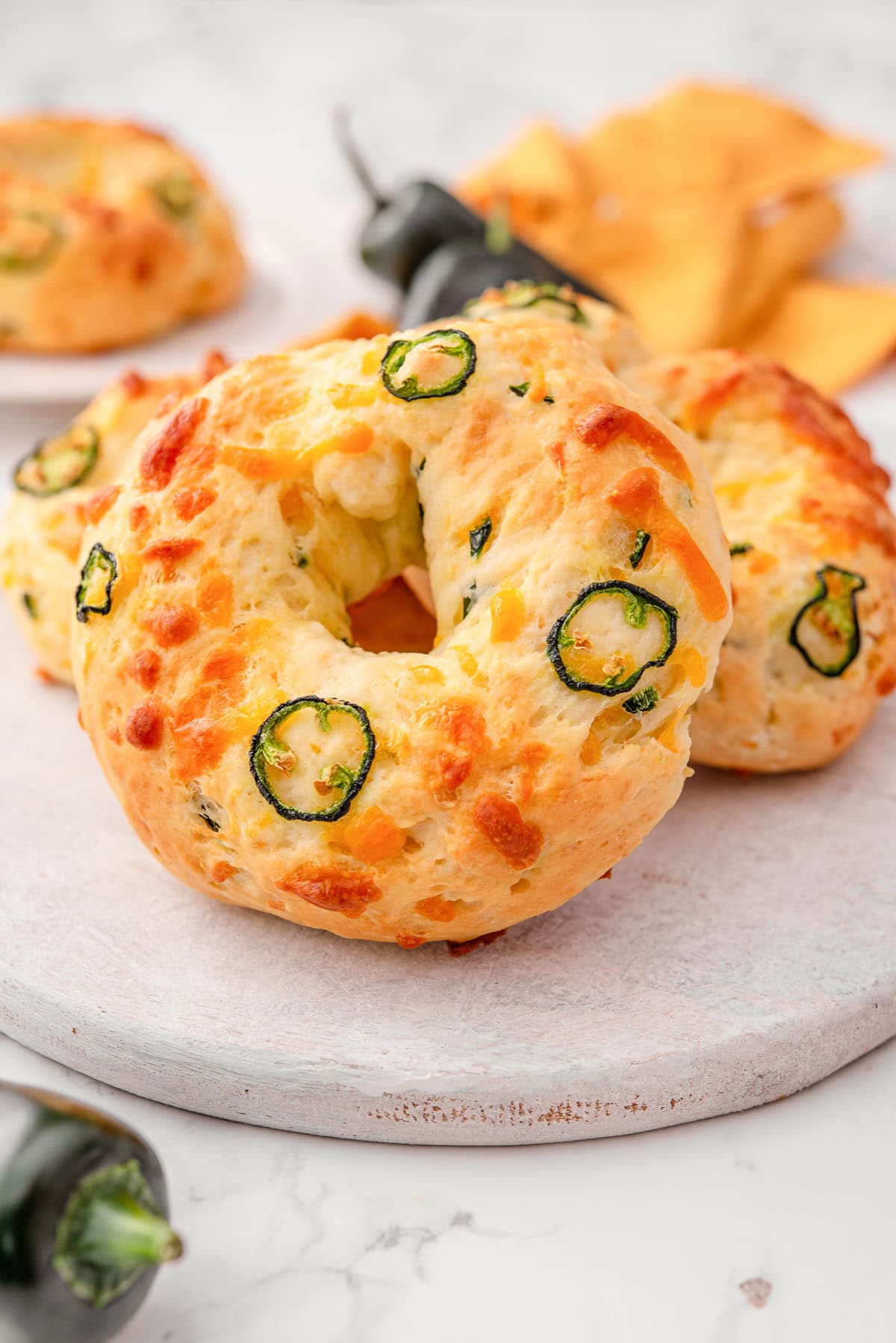 - No jalapeno: Simply omit the jalapeno and everything else stays the same. You’ll still get a soft, cheesy, protein-packed bagel!