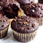 These Healthy Chocolate Muffins are indulgently fudgy, fluffy and moist. Made with whole grains, no oil, naturally sweetened and loaded with chocolate chips.